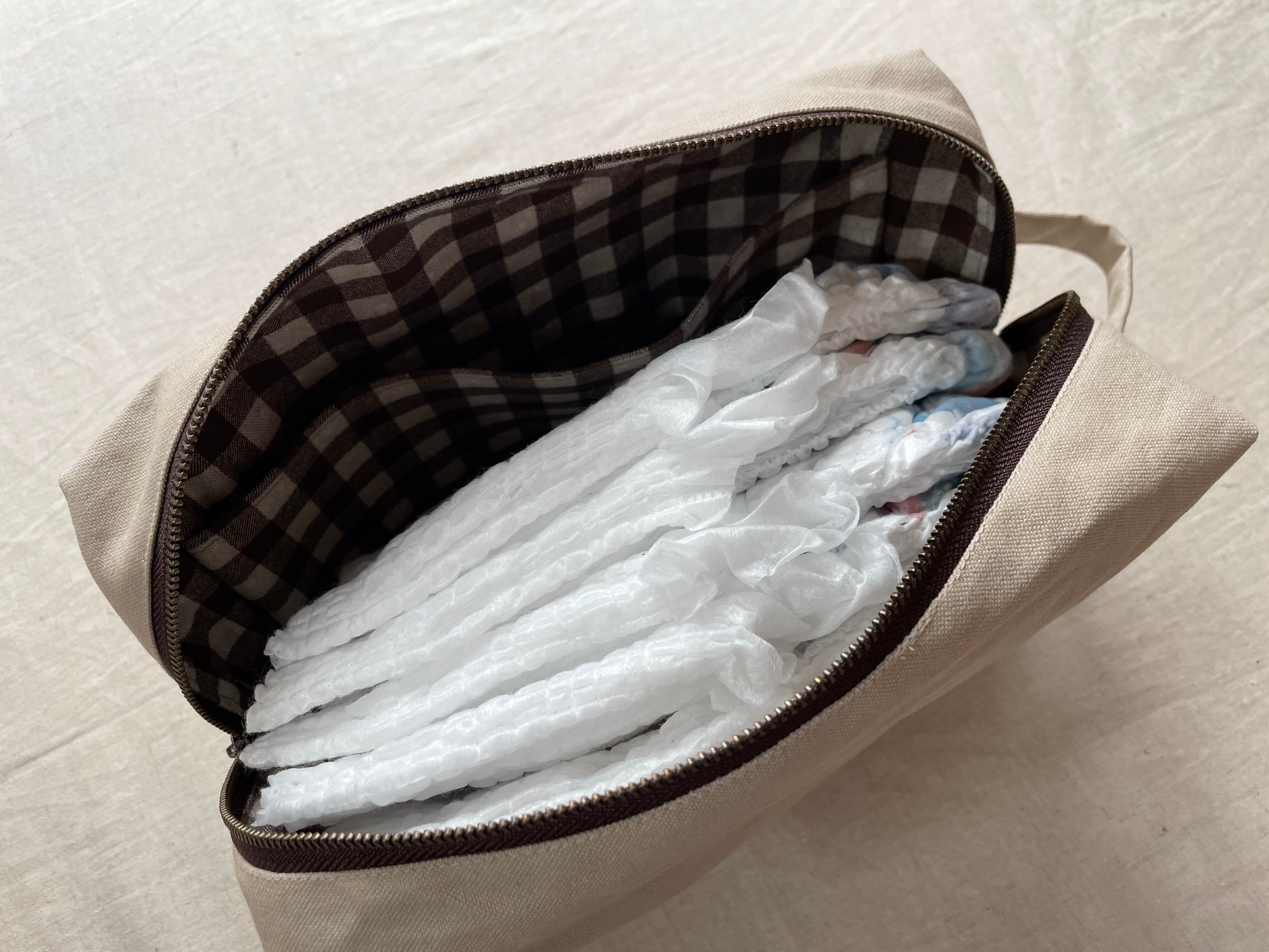 名入りオムツポーチ きなり×チェック柄ブラウン