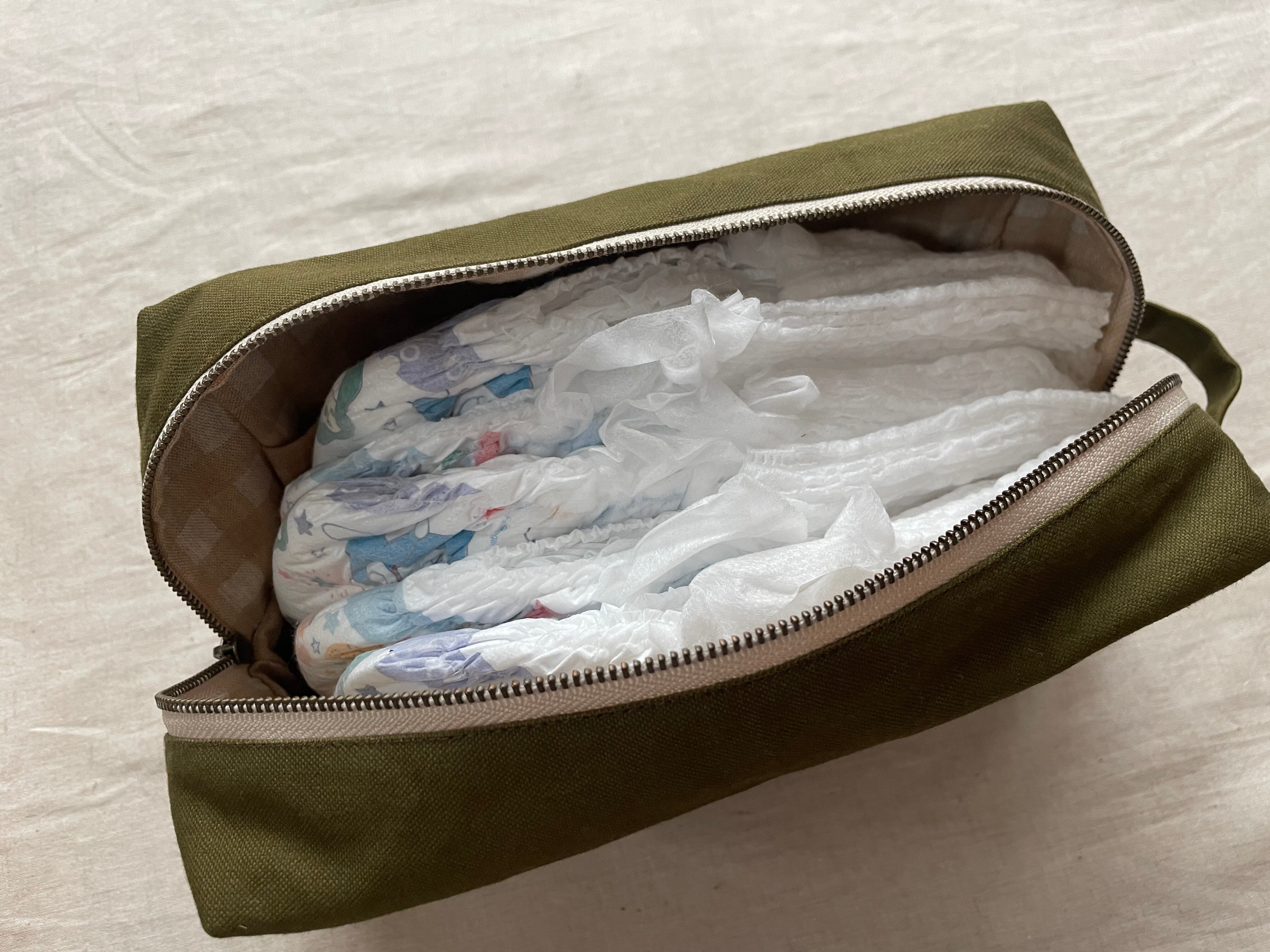 名入りオムツポーチ カーキ×チェック柄ベージュ