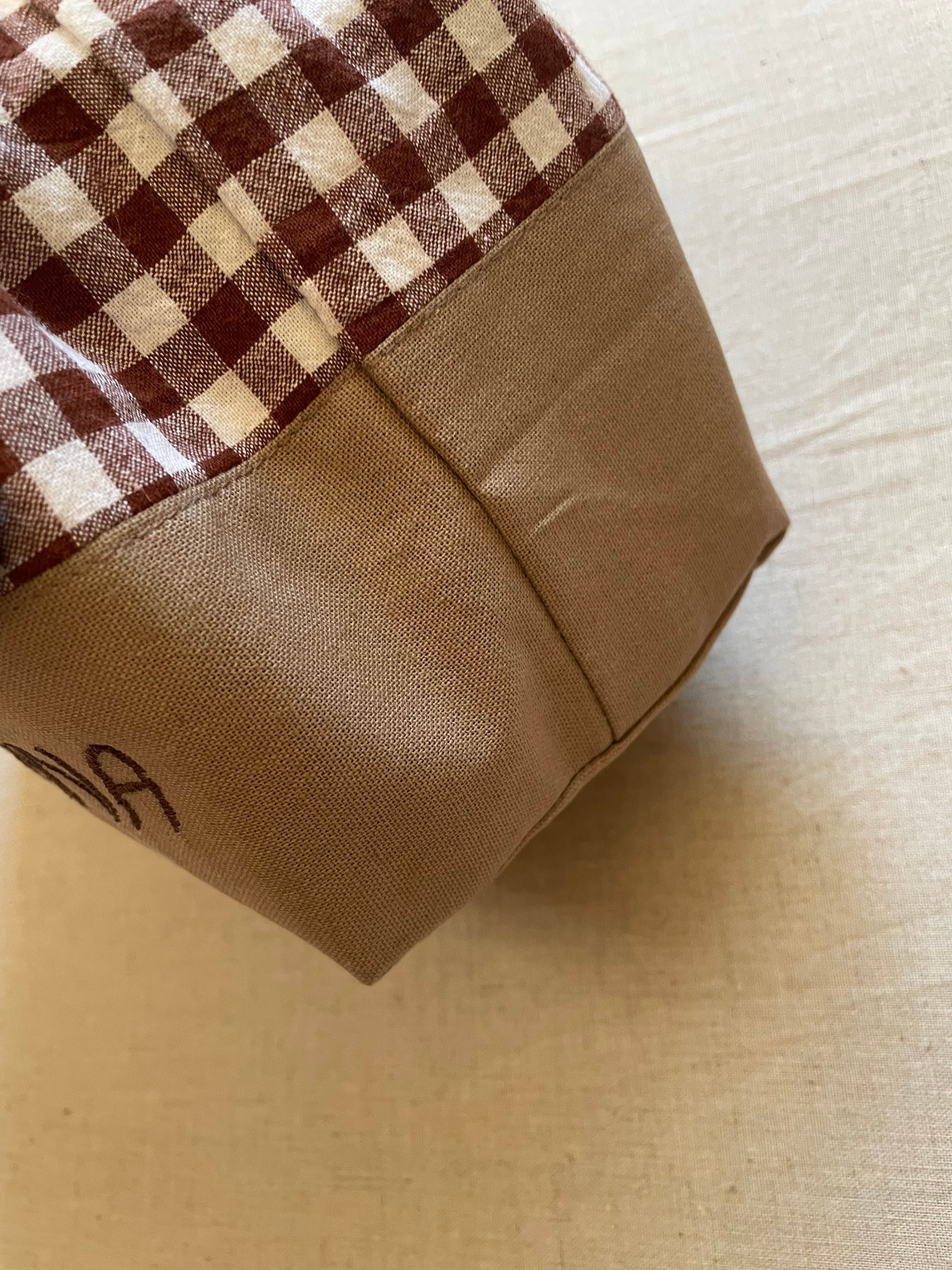 入園入学グッズ 巾着袋・お弁当袋 2点セット 綿生地チェック柄ブラウン×ベージュ