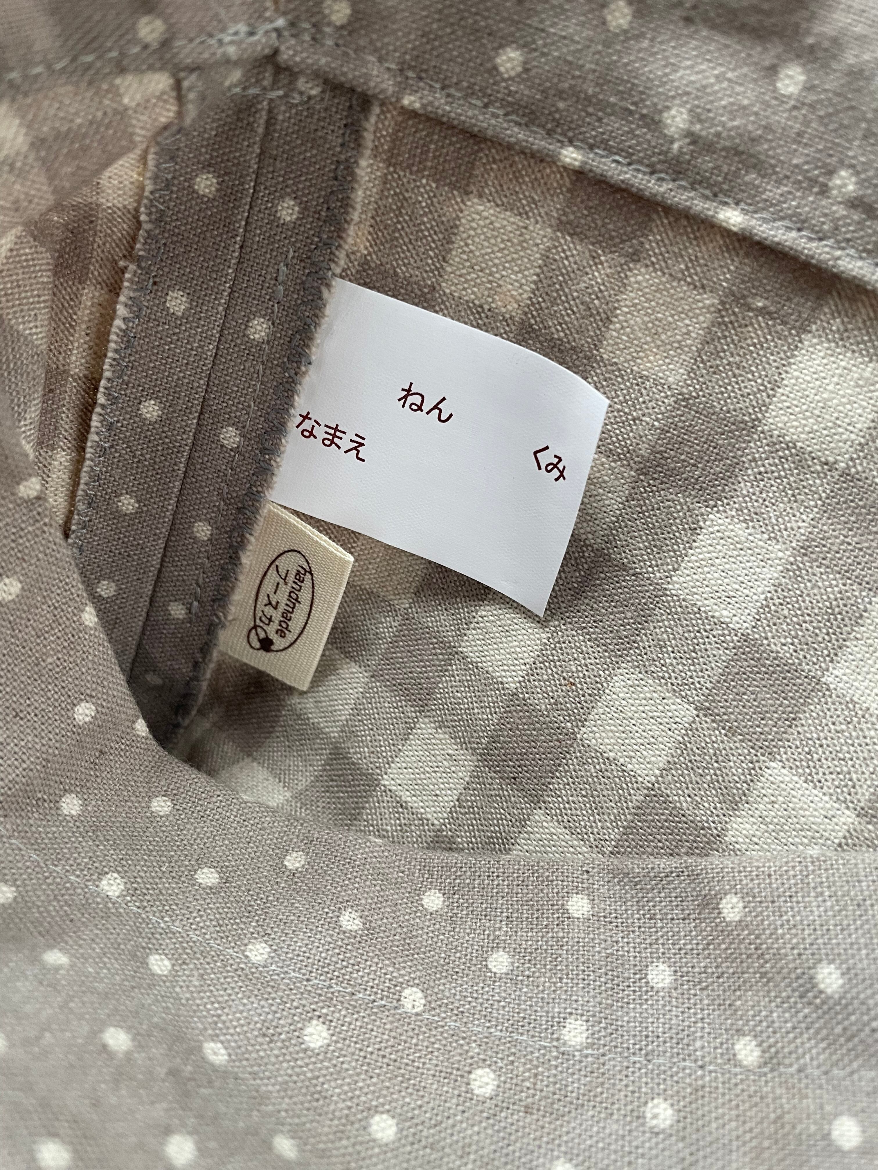入園入学グッズ 巾着袋 綿麻キャンバス生地ドット柄グレー×カーキ