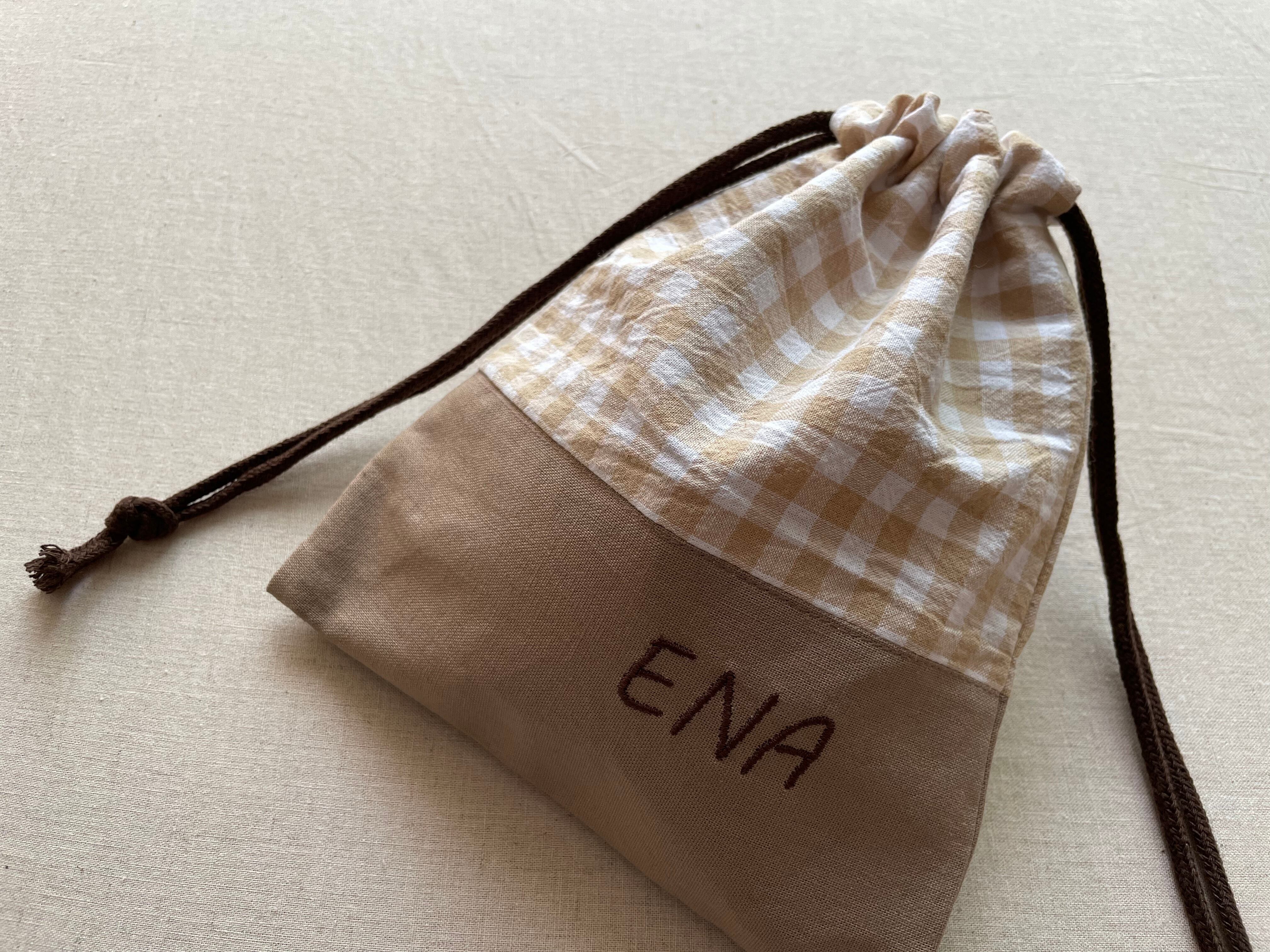 入園入学グッズ 巾着袋 綿生地チェック柄ベージュ×ベージュ