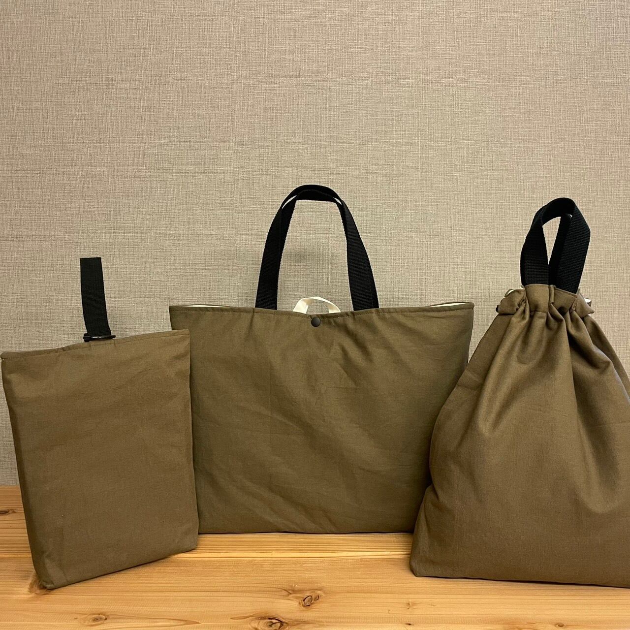 入園入学グッズ 6点セット 綿麻キャンバス生地カーキ×ブラック