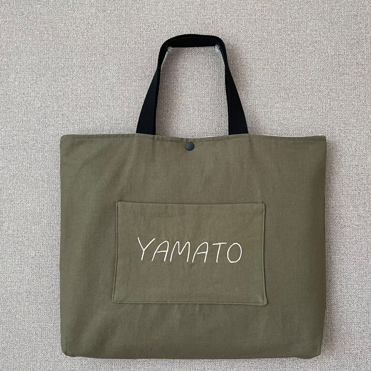 入園入学グッズ 手提げ袋 綿麻キャンバス生地カーキ×ブラック