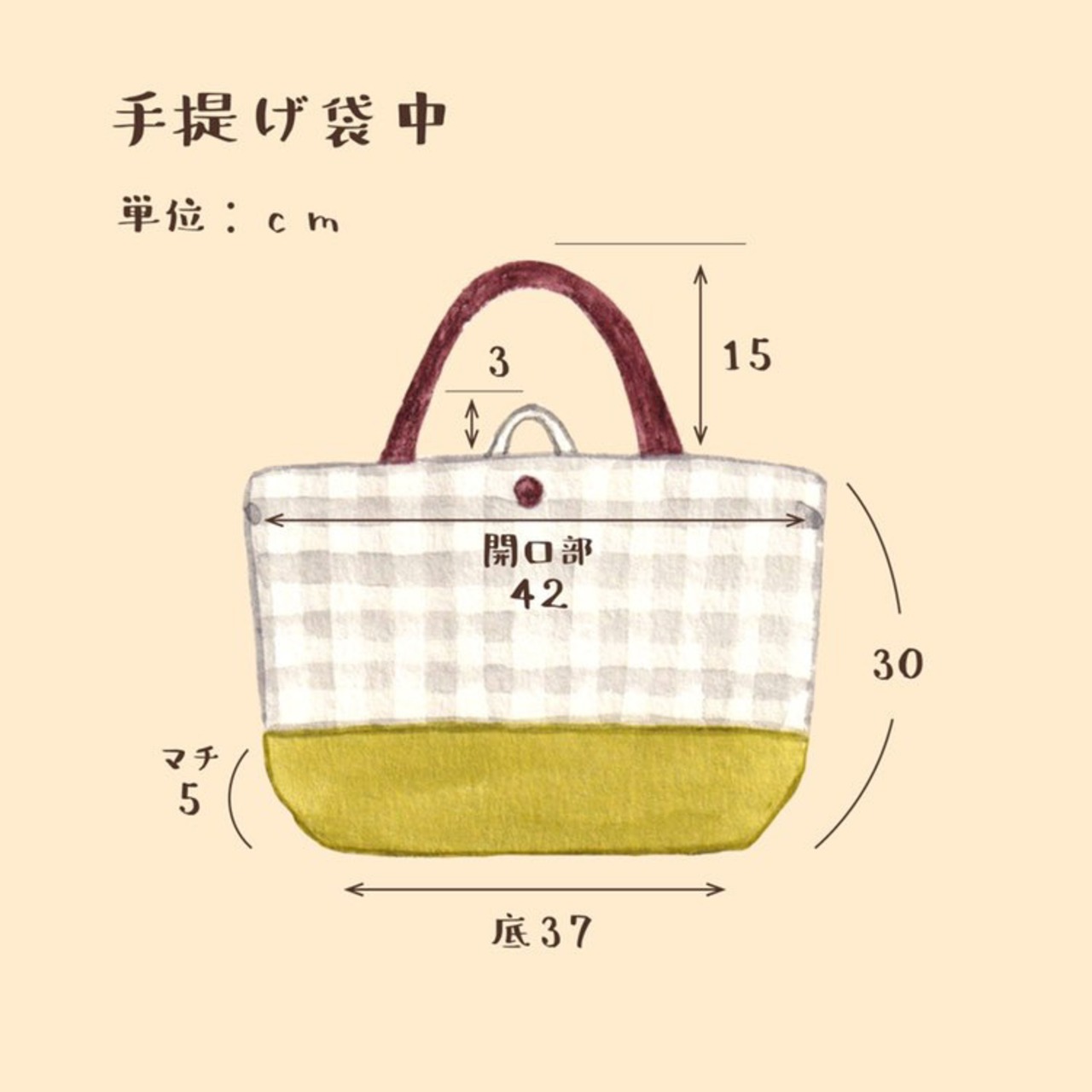 縦30cm×横42cm(底37cm)マチ5cm