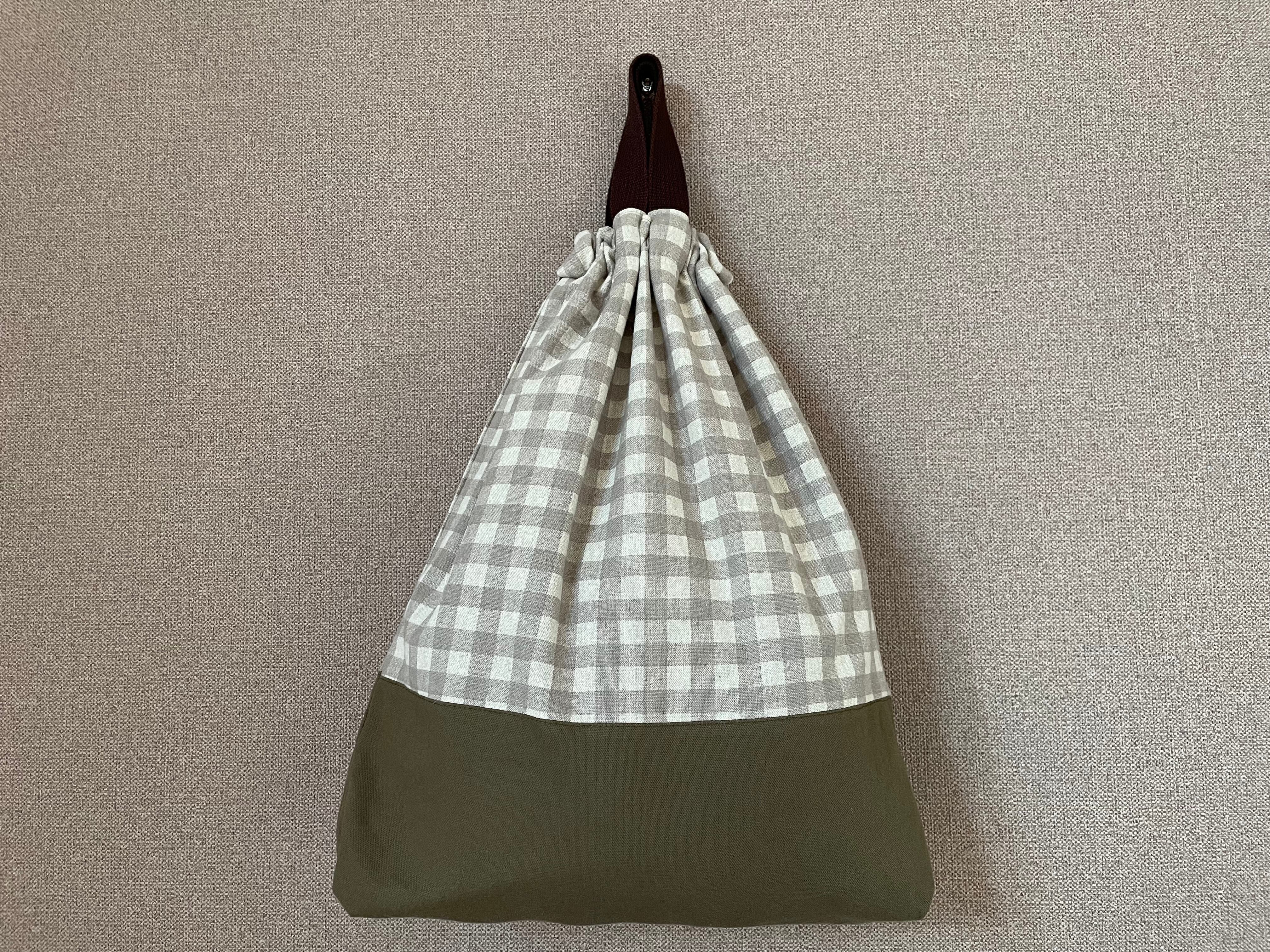 入園入学グッズ 体操服袋 綿麻キャンバス生地チェック柄グレー×カーキ