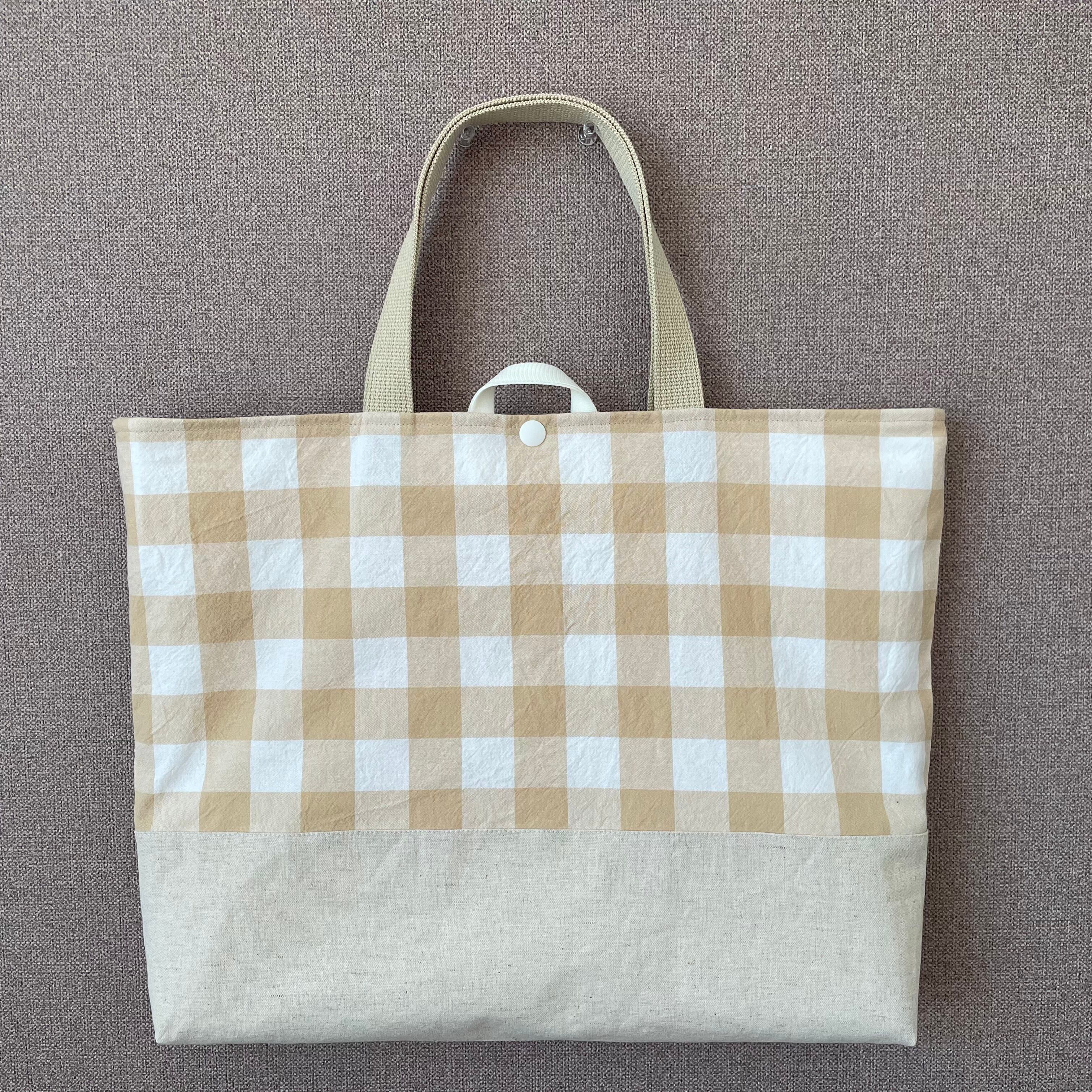 入園入学グッズ 3点セット 手提げ袋・体操服袋・上履き袋 綿生地チェック柄ベージュ×きなり