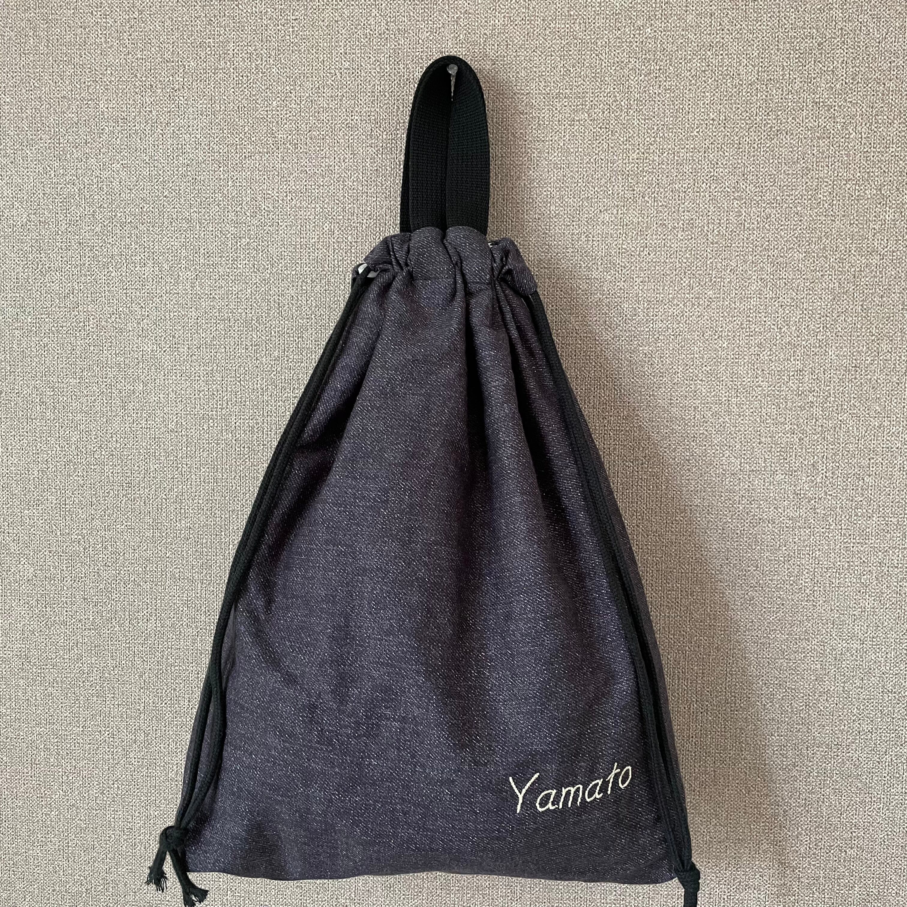 入園入学グッズ 体操服袋 綿生地デニム調×ブラック