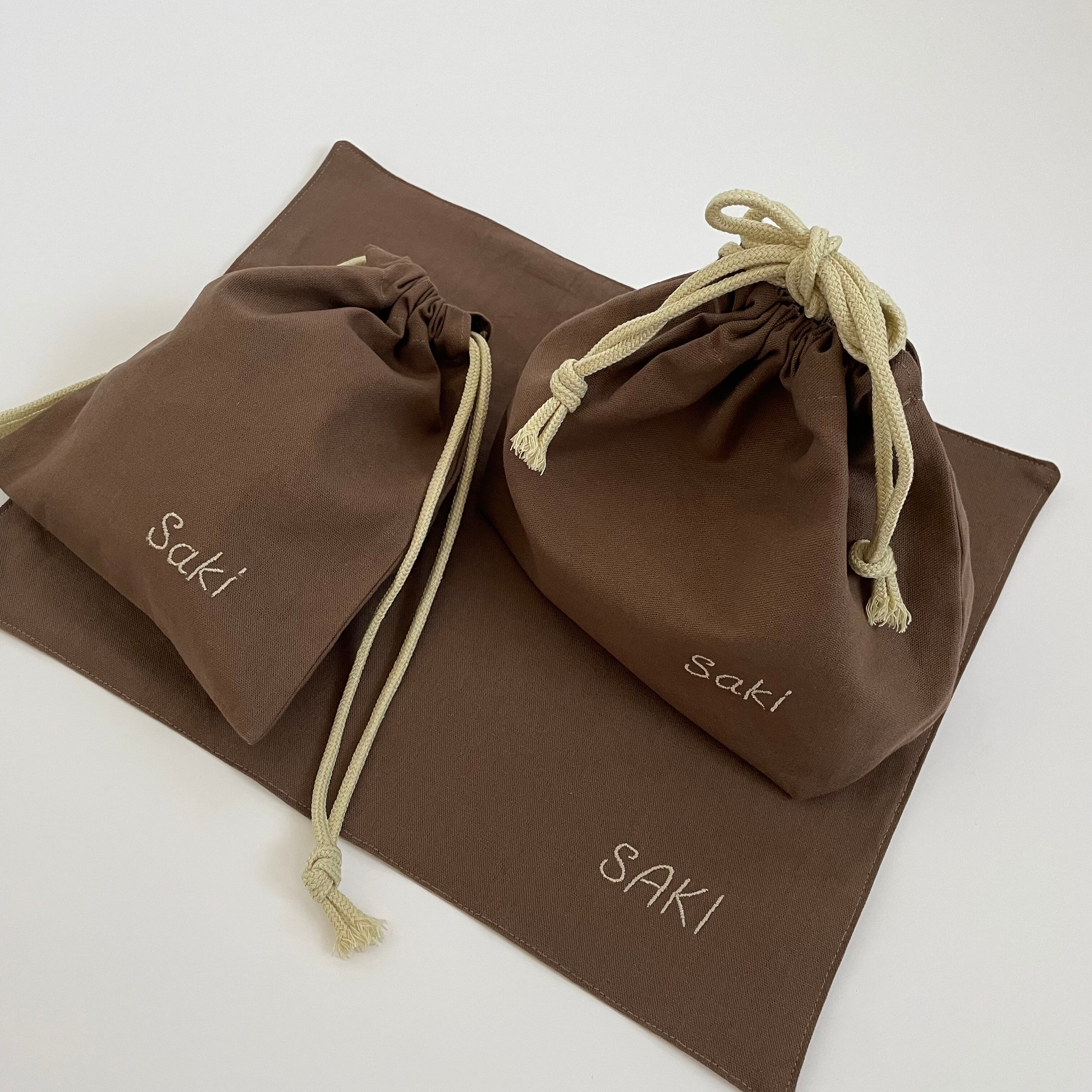 巾着袋・お弁当袋・ランチョンマット3点セット 綿麻キャンバス生地ブラウン×ベージュ