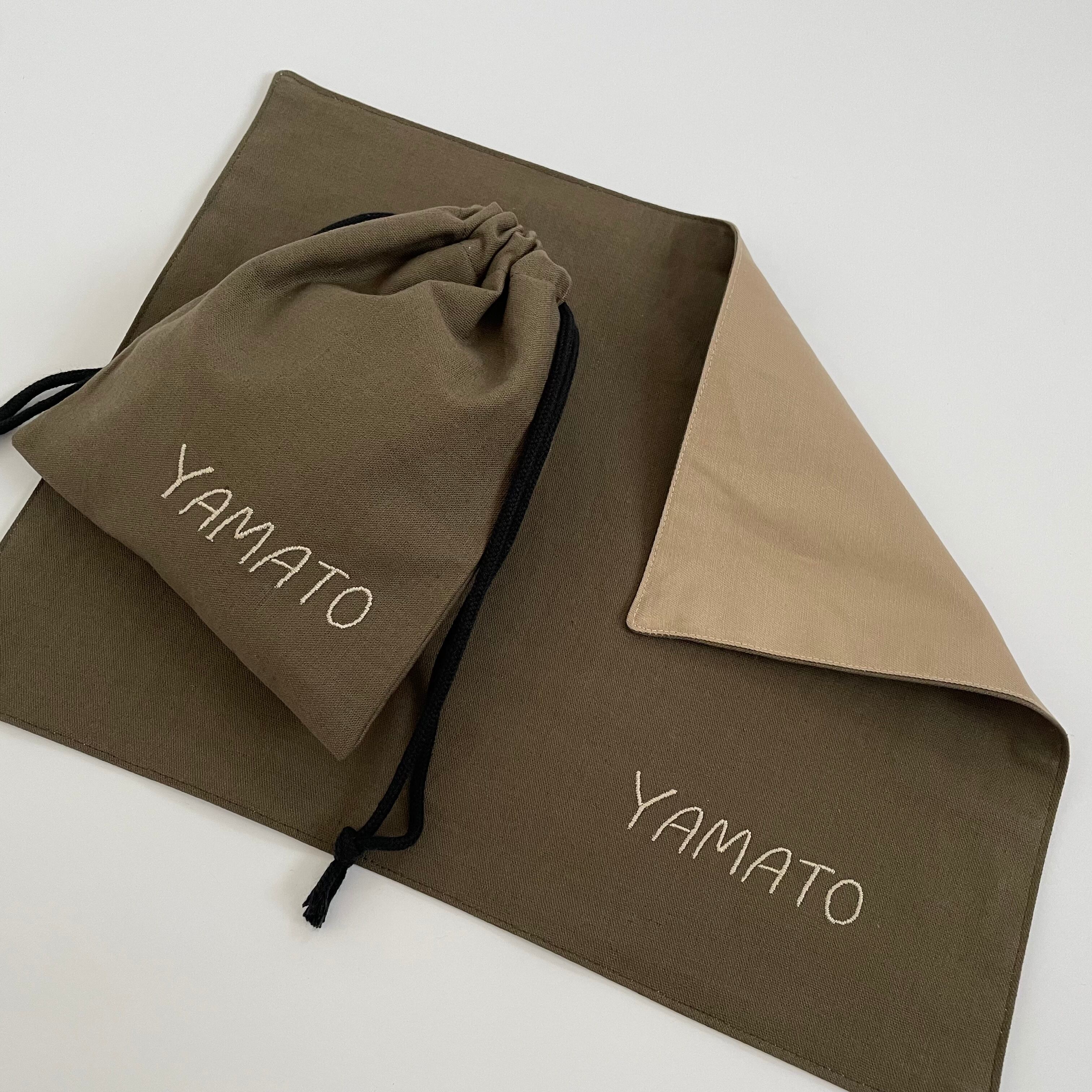 巾着袋・ランチョンマット2点セット 綿麻キャンバス生地カーキ×ブラック