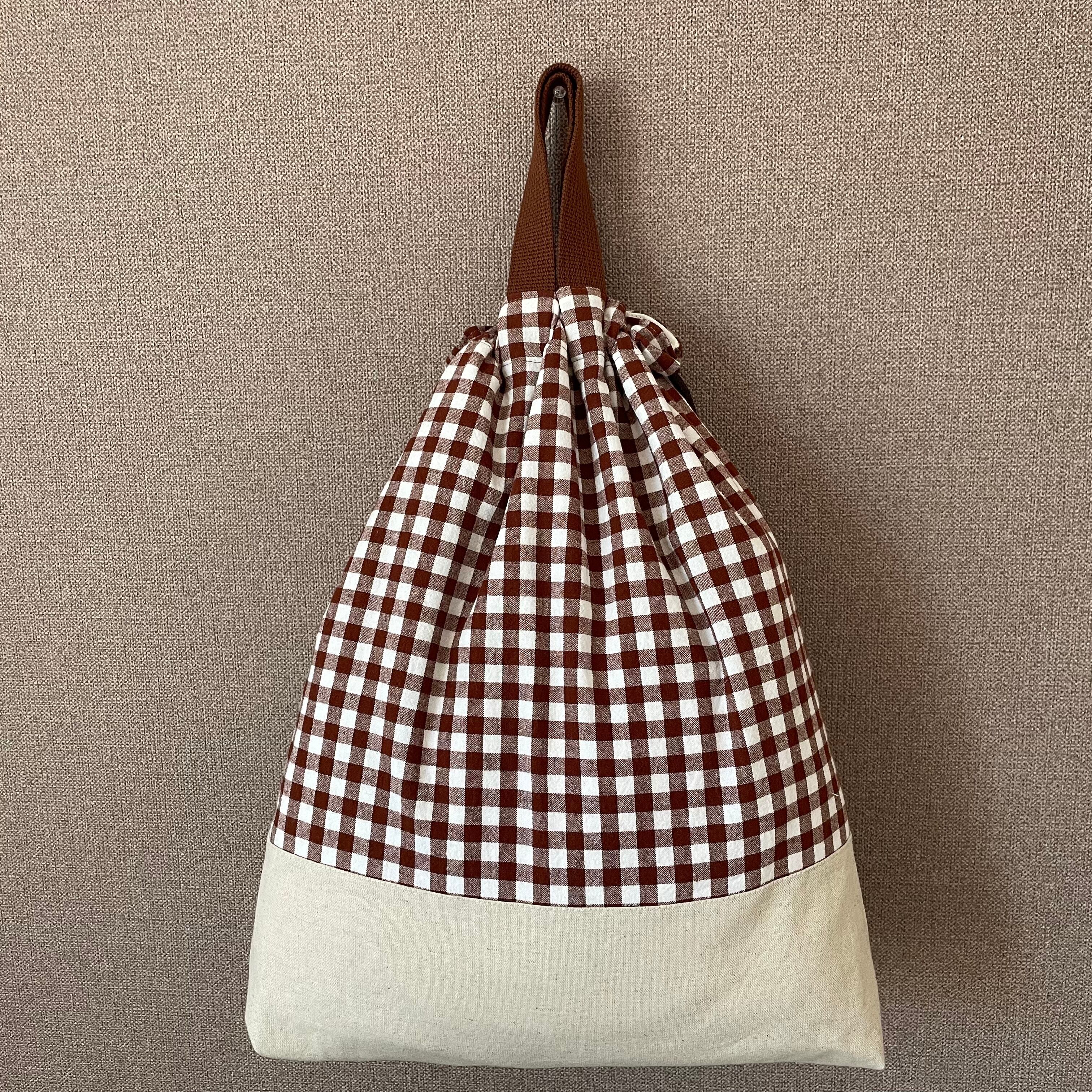 入園入学グッズ 体操服袋 綿生地チェック柄ブラウン×綿麻キャンバス生地きなり