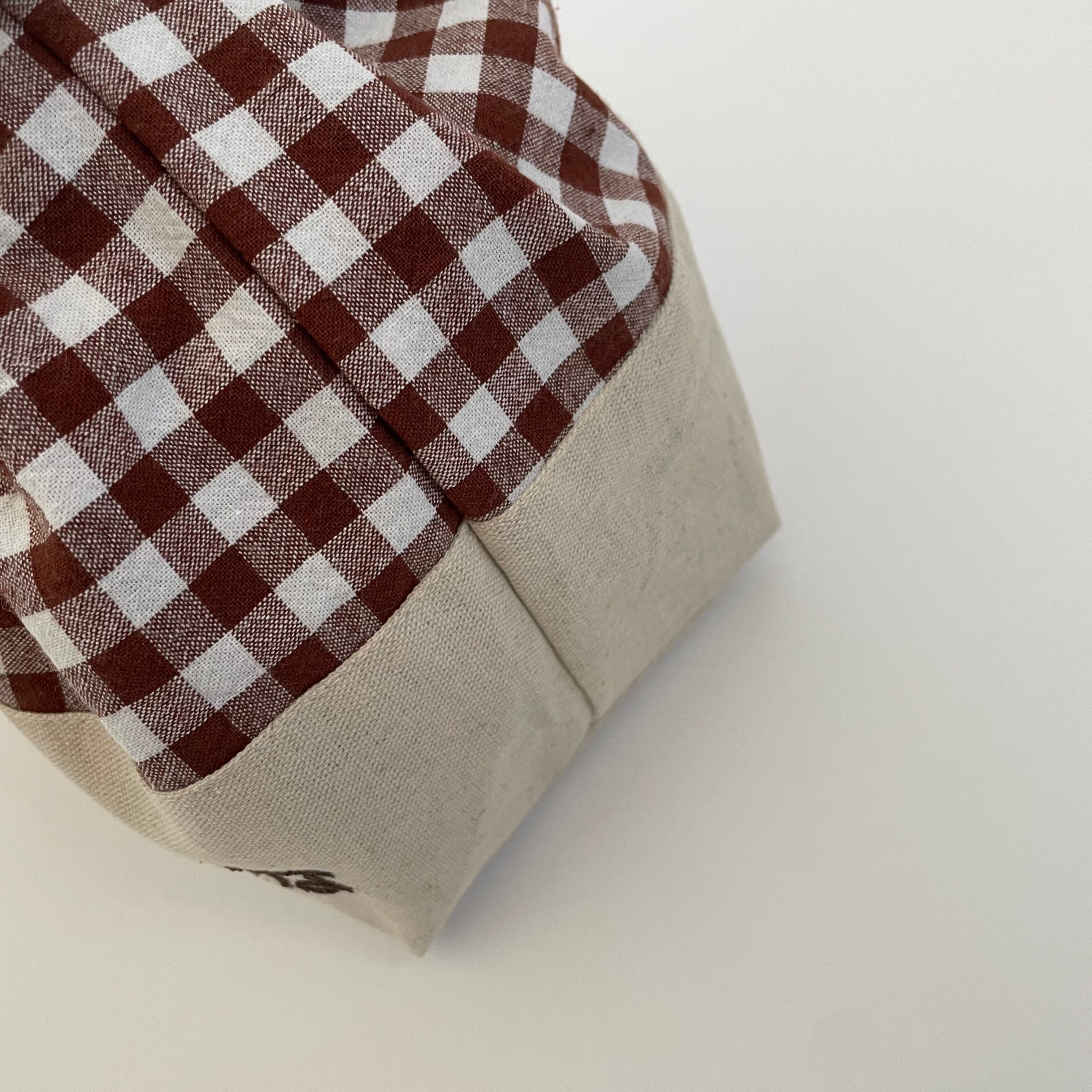 お弁当袋 綿生地チェック柄ブラウン×綿麻キャンバス生地きなり