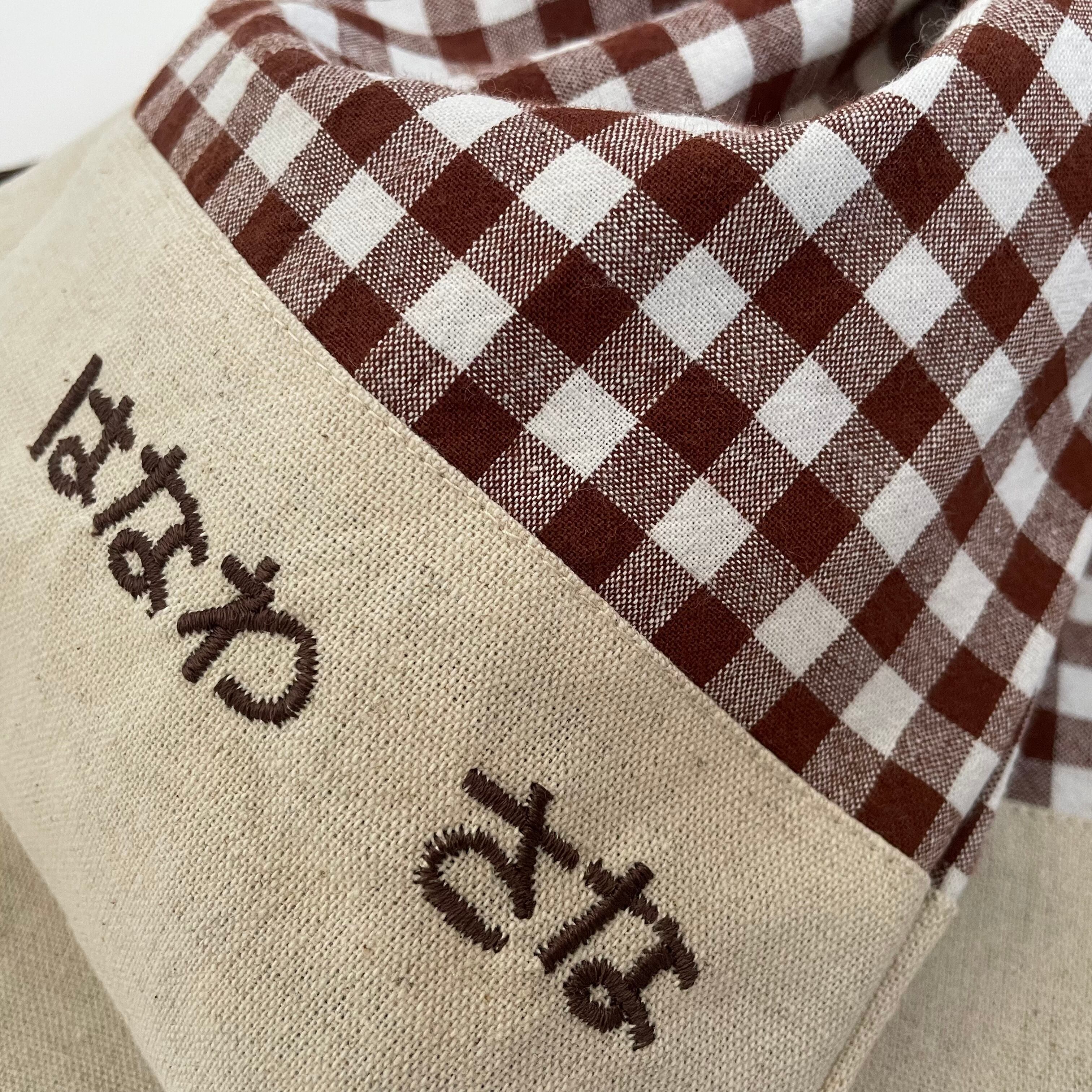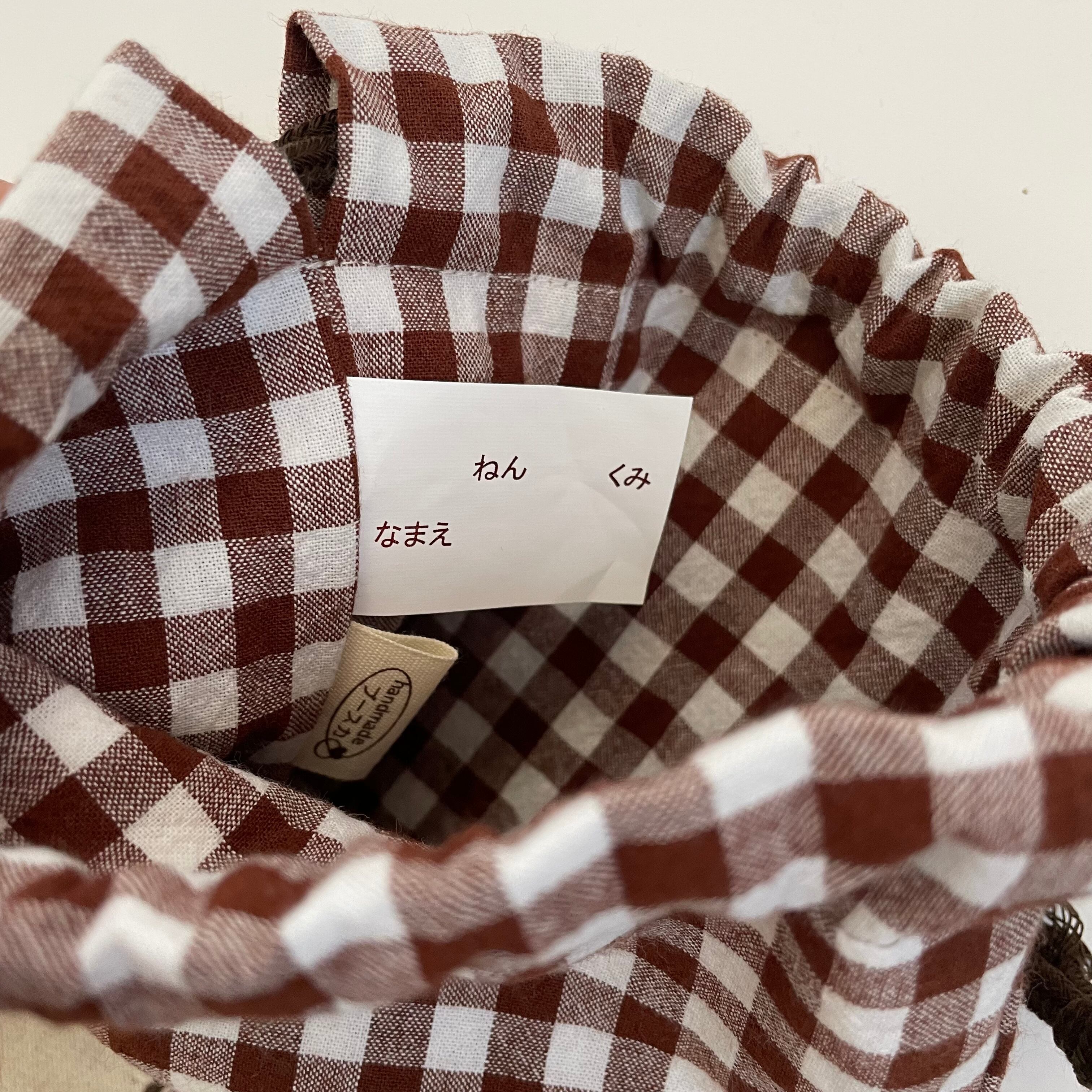 入園入学グッズ 巾着袋・お弁当袋 2点セット 綿生地チェック柄ブラウン×綿麻キャンバス生地きなり